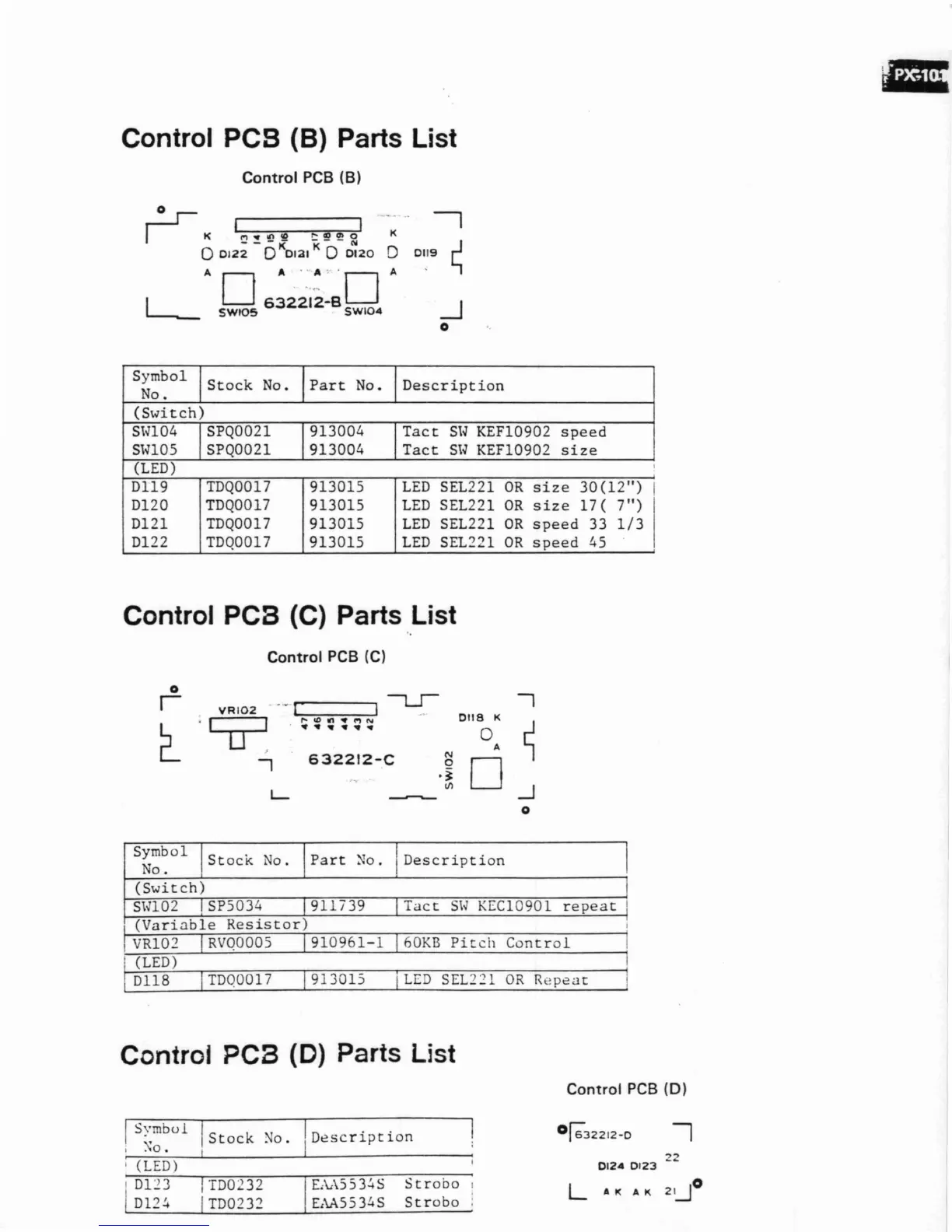 Luxman PX-101 - Control PCB Parts List