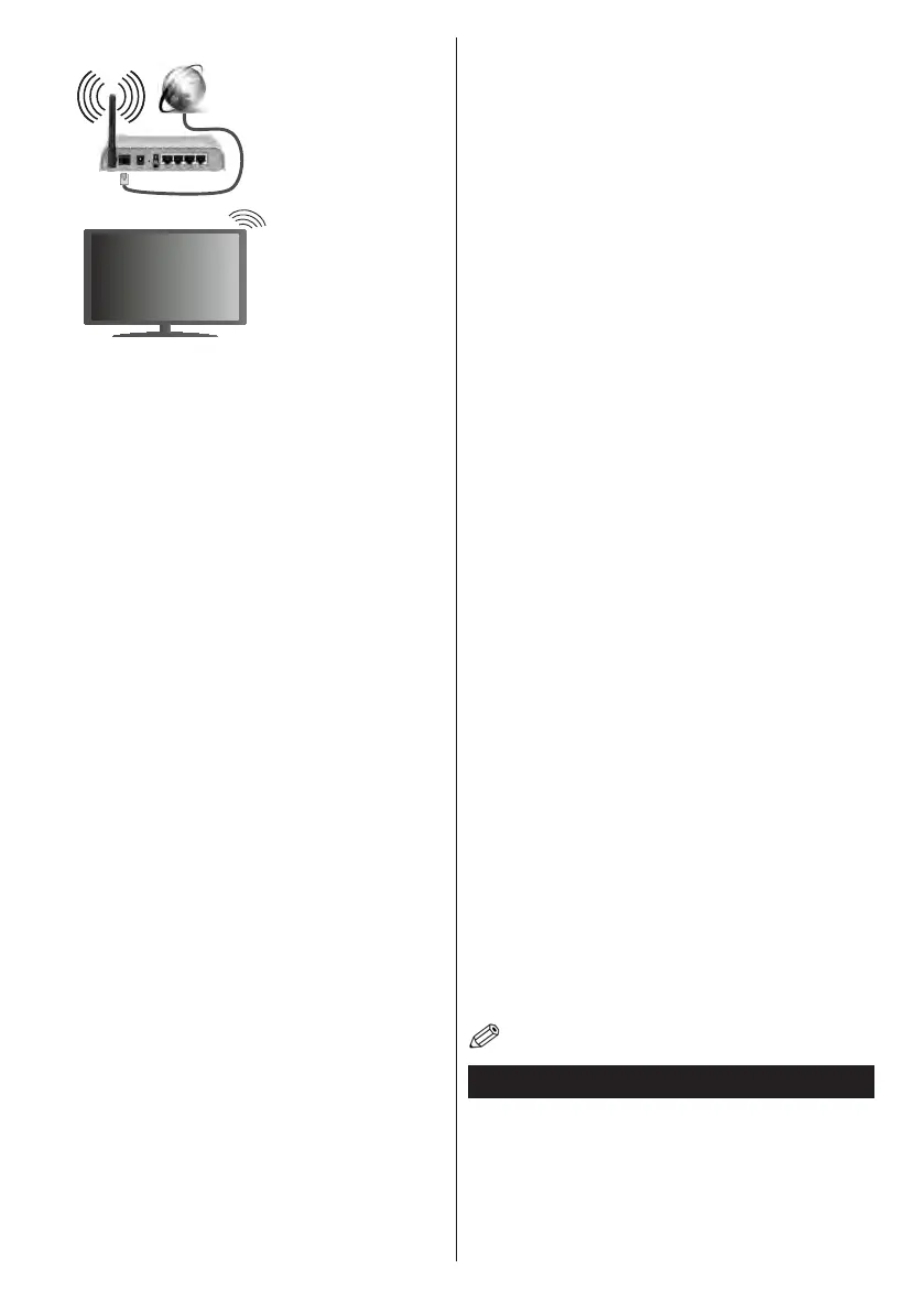 • Den trådløse funktion i TV'et understøtter 802.11 a,