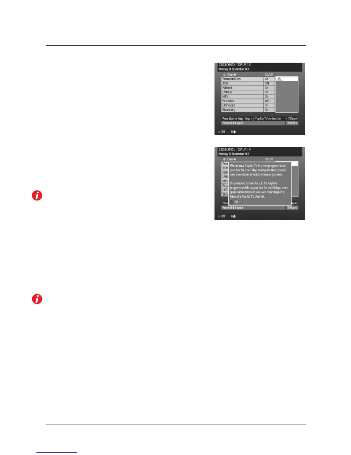 The rst of these may be if you de-activate a Top Up TV Anytime channel. The warning