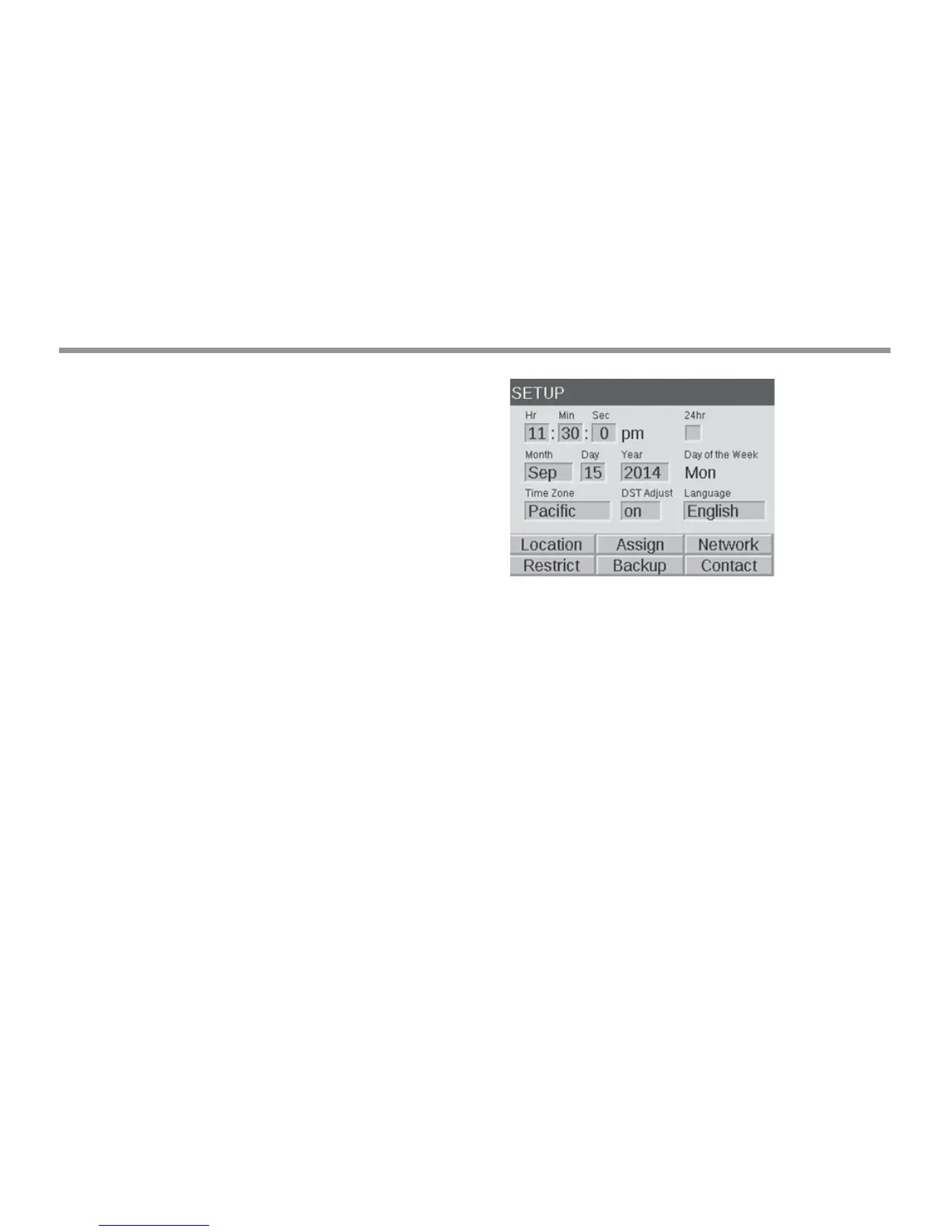 • Set the three time categories (Hr:Min:Sec) to the current time