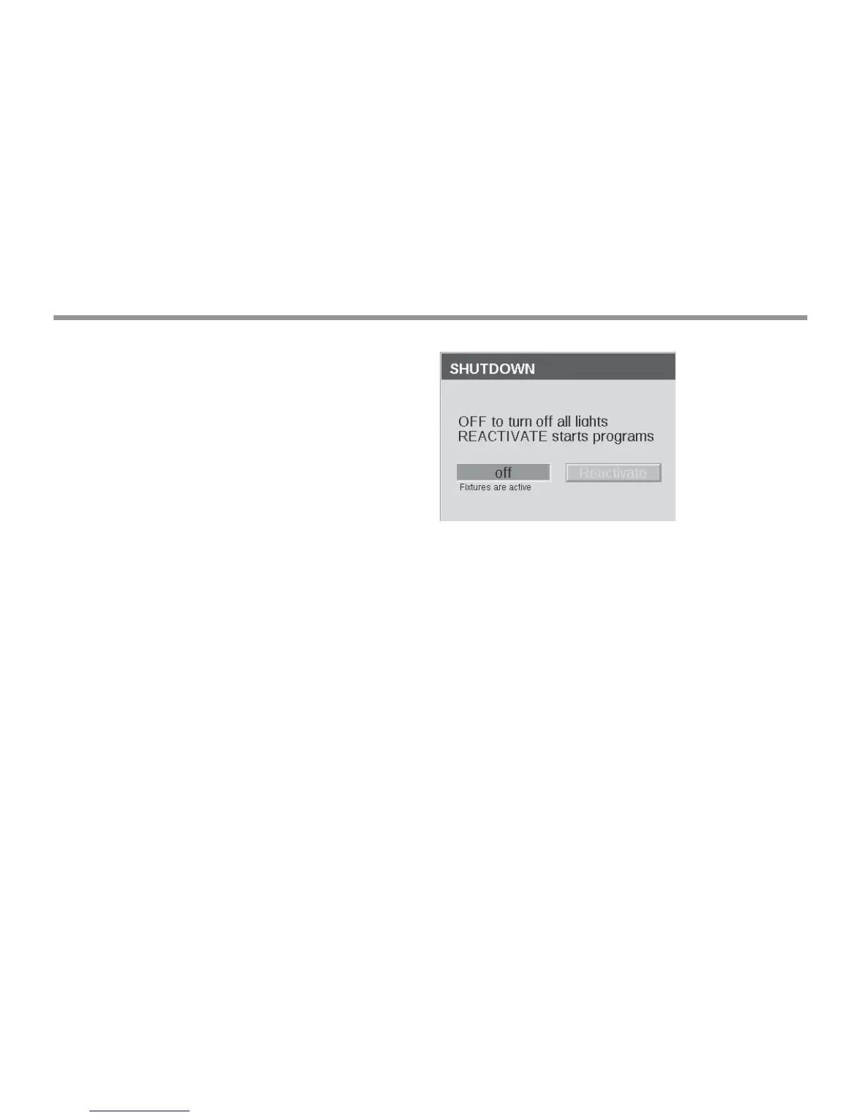 immediately shut down all xtures in PROGRAMS, MANUAL or