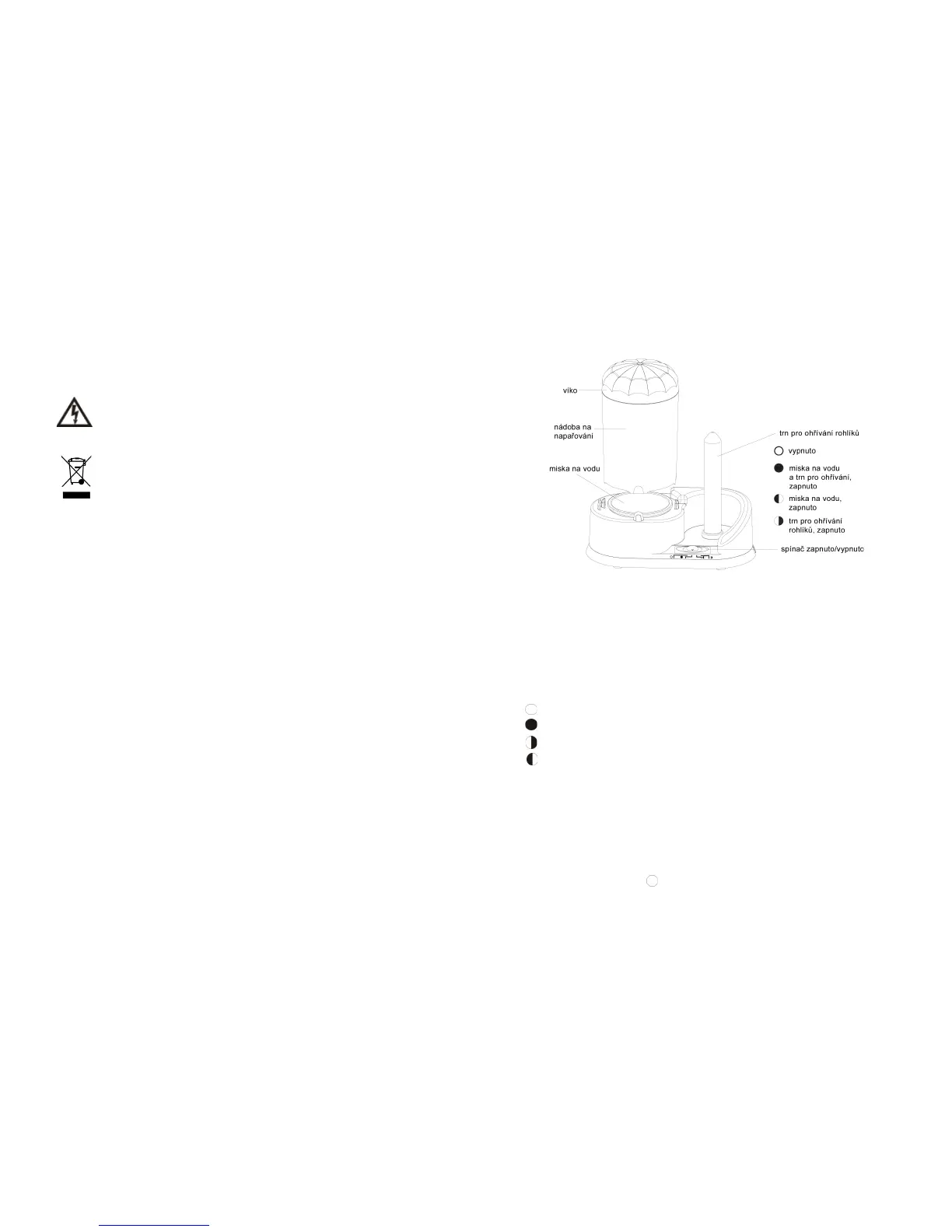 „pravá polovina černá“ — Zapnuto pouze zařízení na ohřívání pečiva.