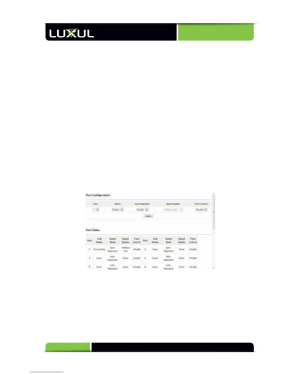 Admin: Either enables or disables the corresponding port. If “Disable” is