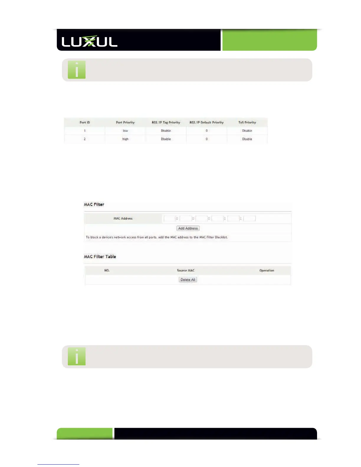 MAC Filter Table: Lists the MAC addresses to be filtered, as shown below. To
