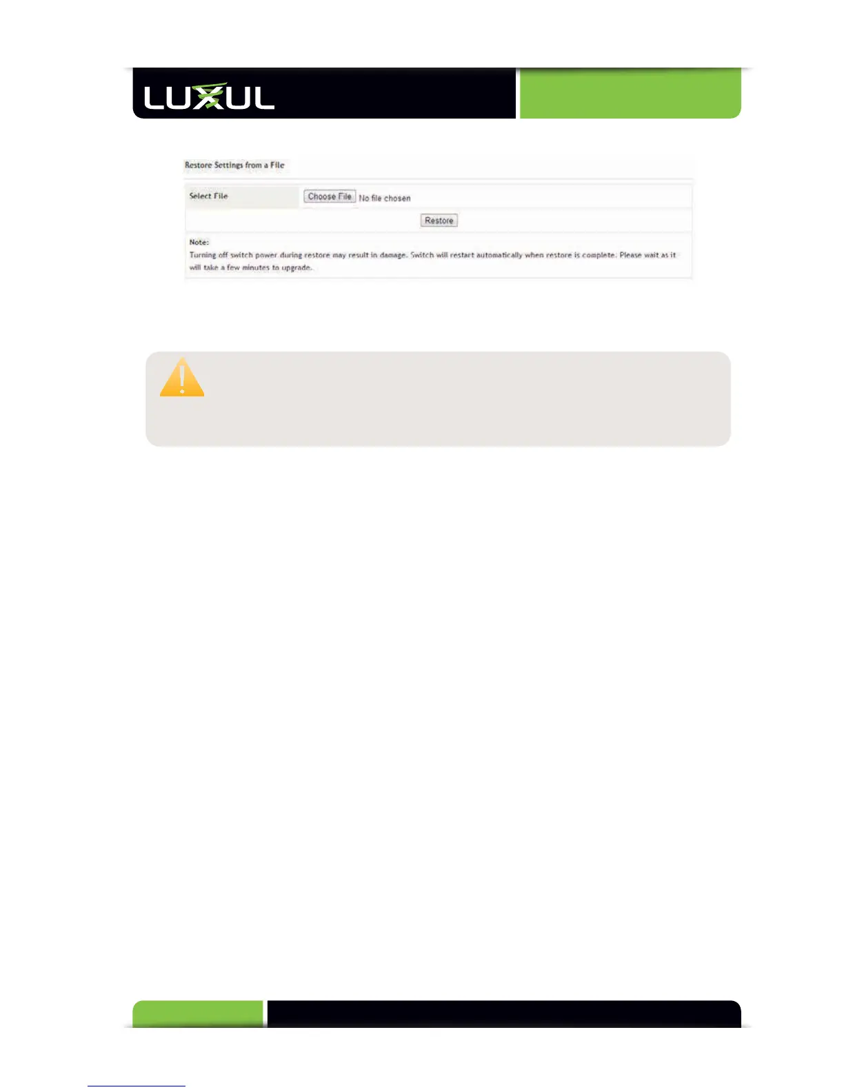 Restore Settings from a File: Restores the backup switch configuration. Click