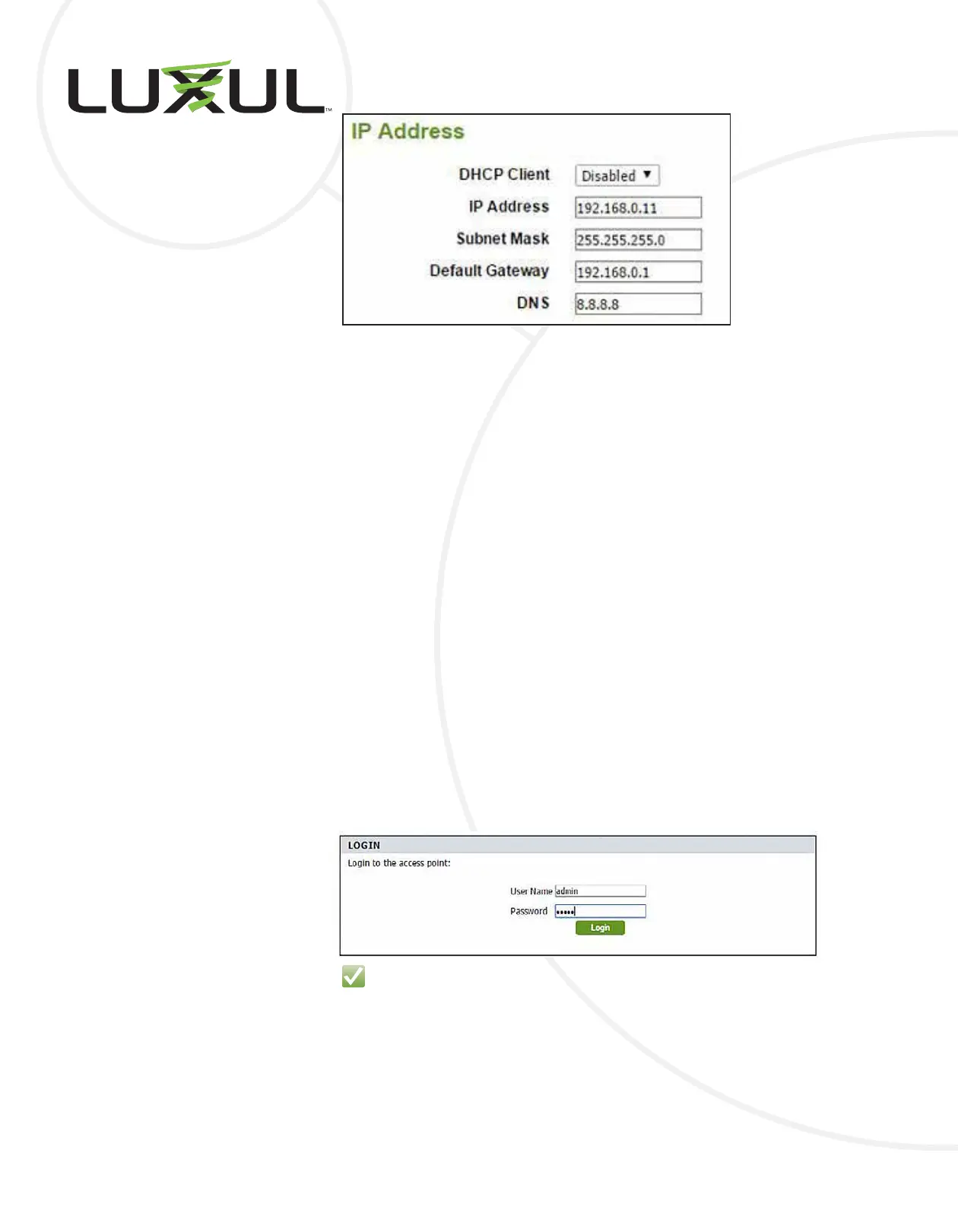 Log in to the AP using the default “admin” for both User Name admin and Pass-