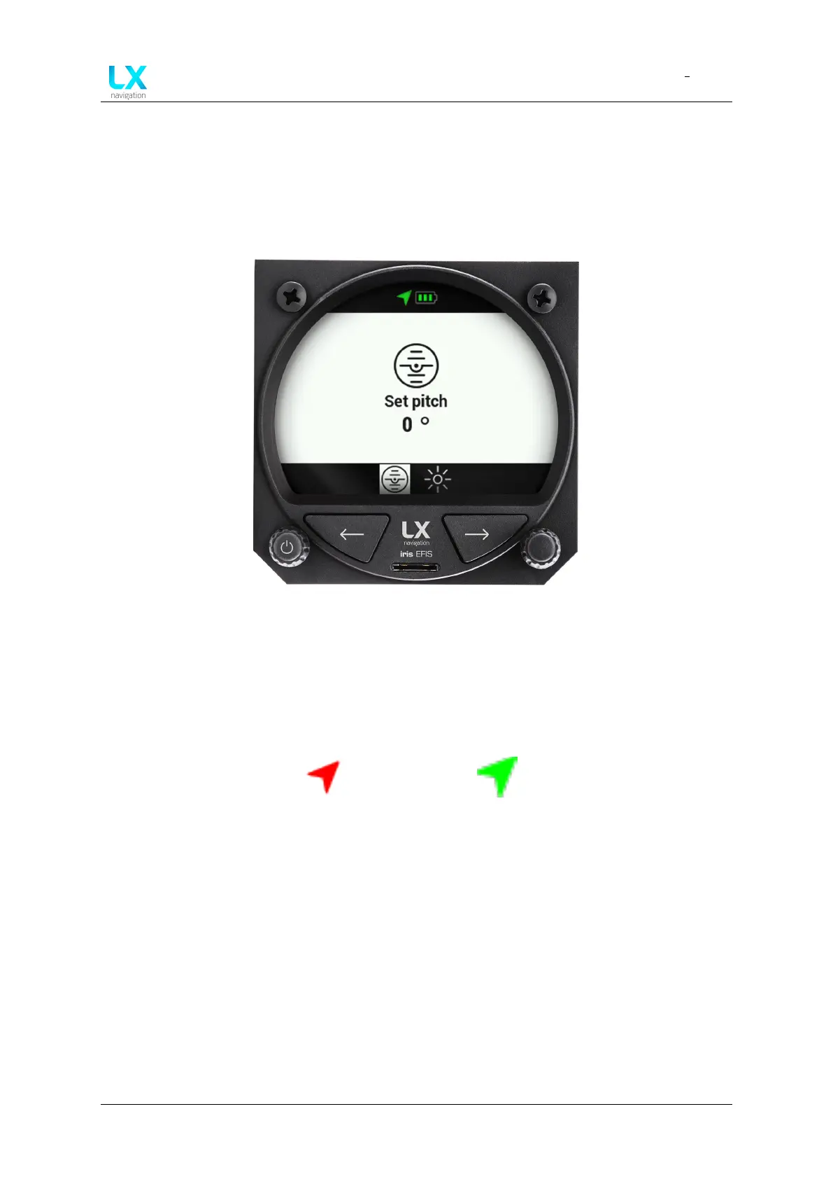 page. In the menu, pilot can adjust “Pitch attitude offset” and “Brightness”.