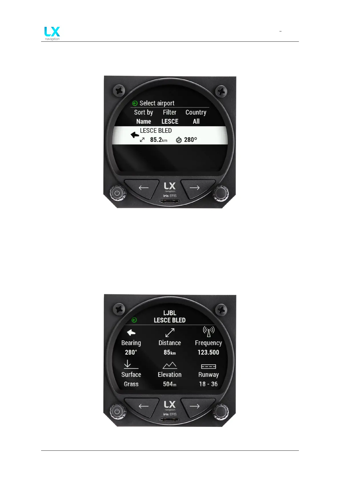 The selected airport can be confirmed by press of the right-hand push-rotary knob.