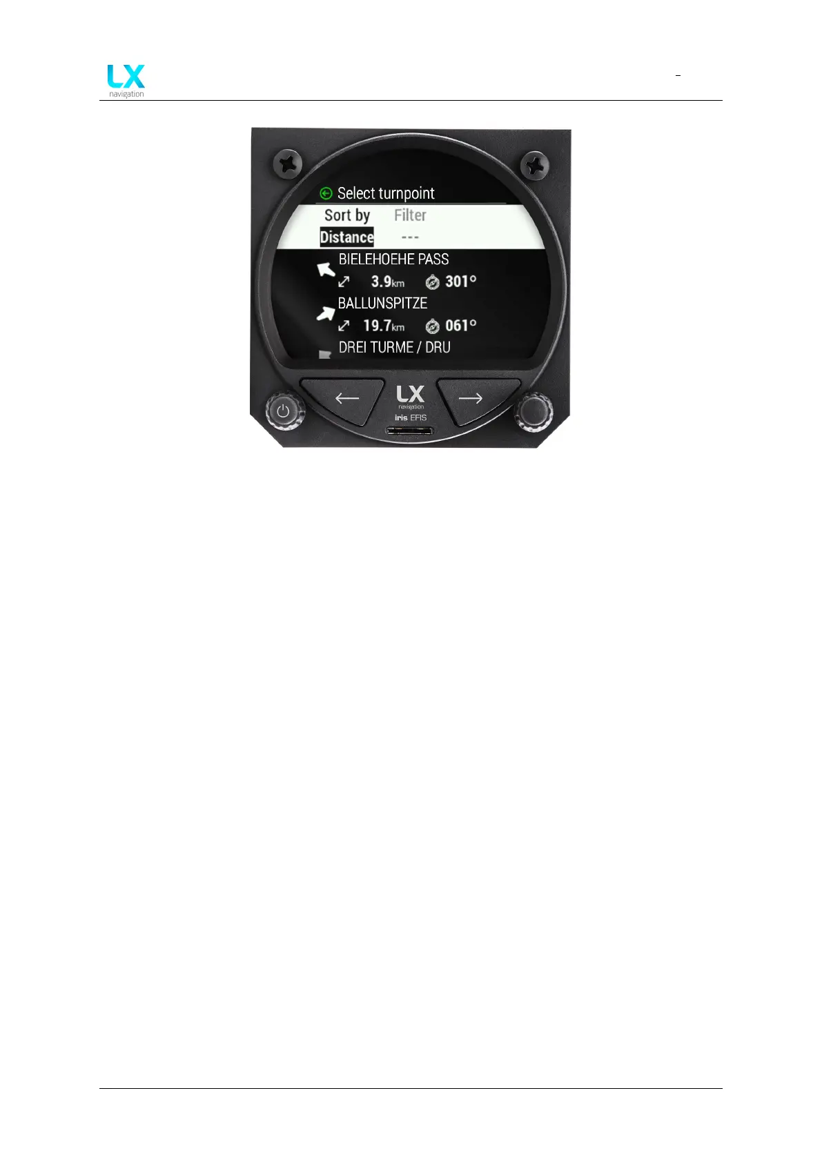 Once pilot have selected the desired “Sort by” parameter by pressing the right-hand push-rotary