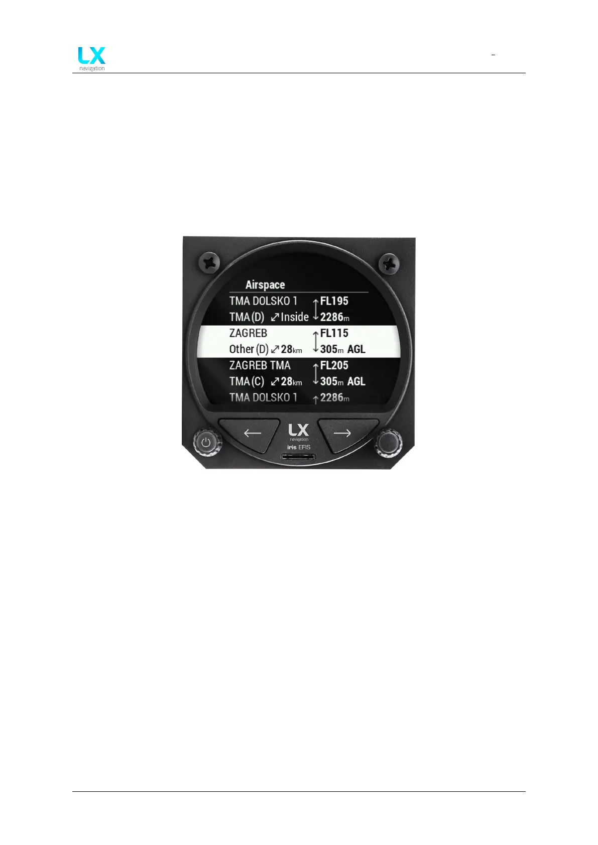 At the list of airspace, pilot can see the name of the airspace and its class below. On the right
