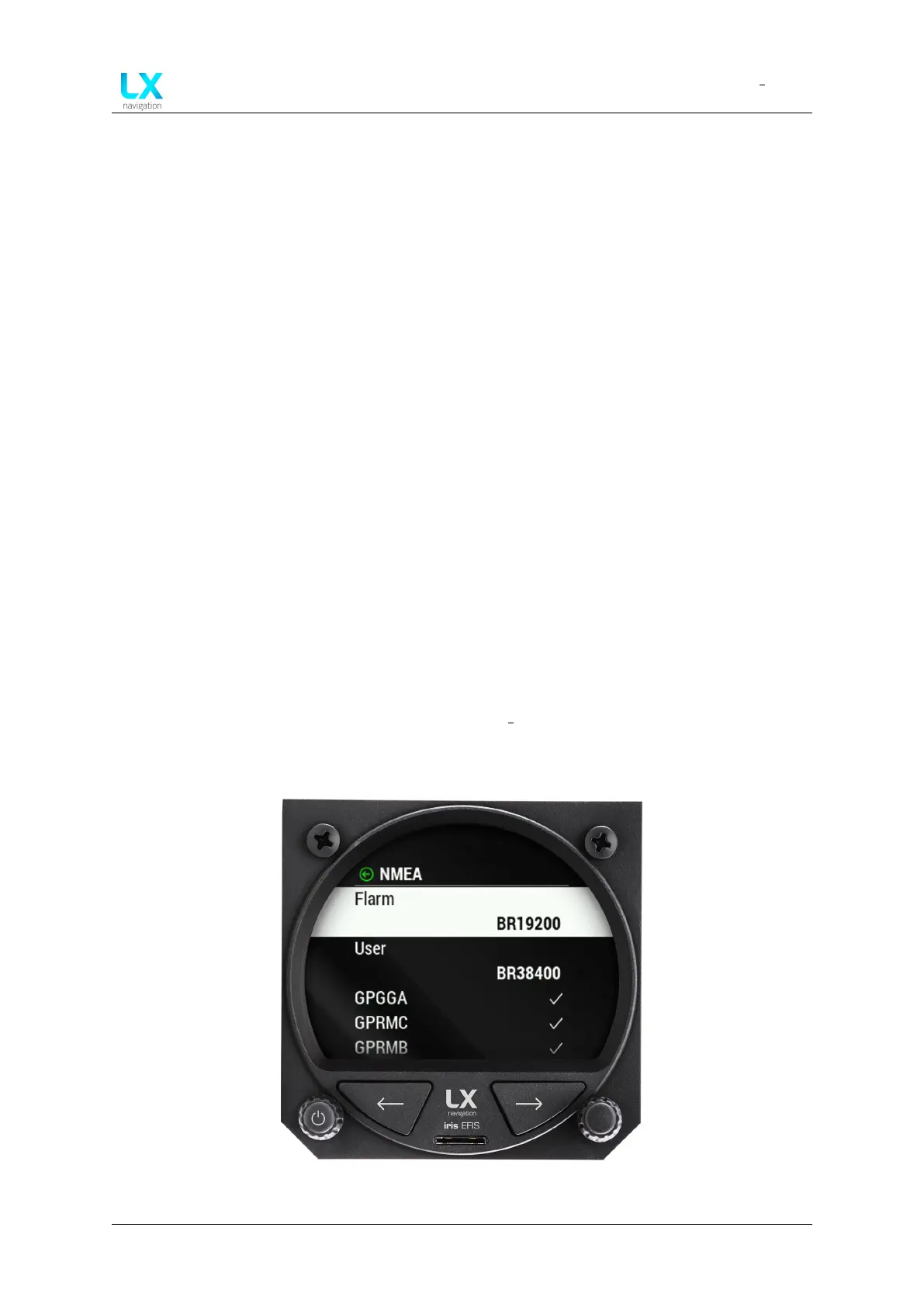 • “LXBC” ”On” or ”Off” option. LX device outputs LXBC sentences (AHRS data, etc.)