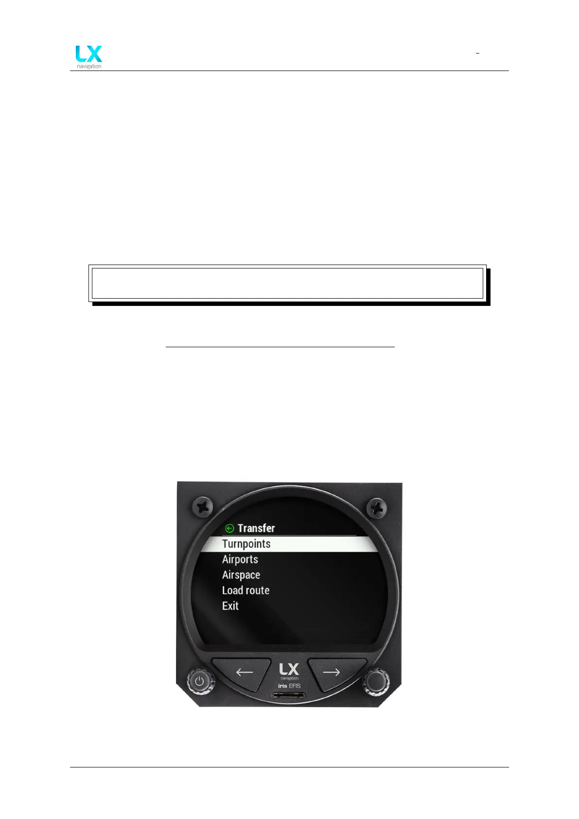 In the ”Transfer” section, pilot can transfer and upload all database files.