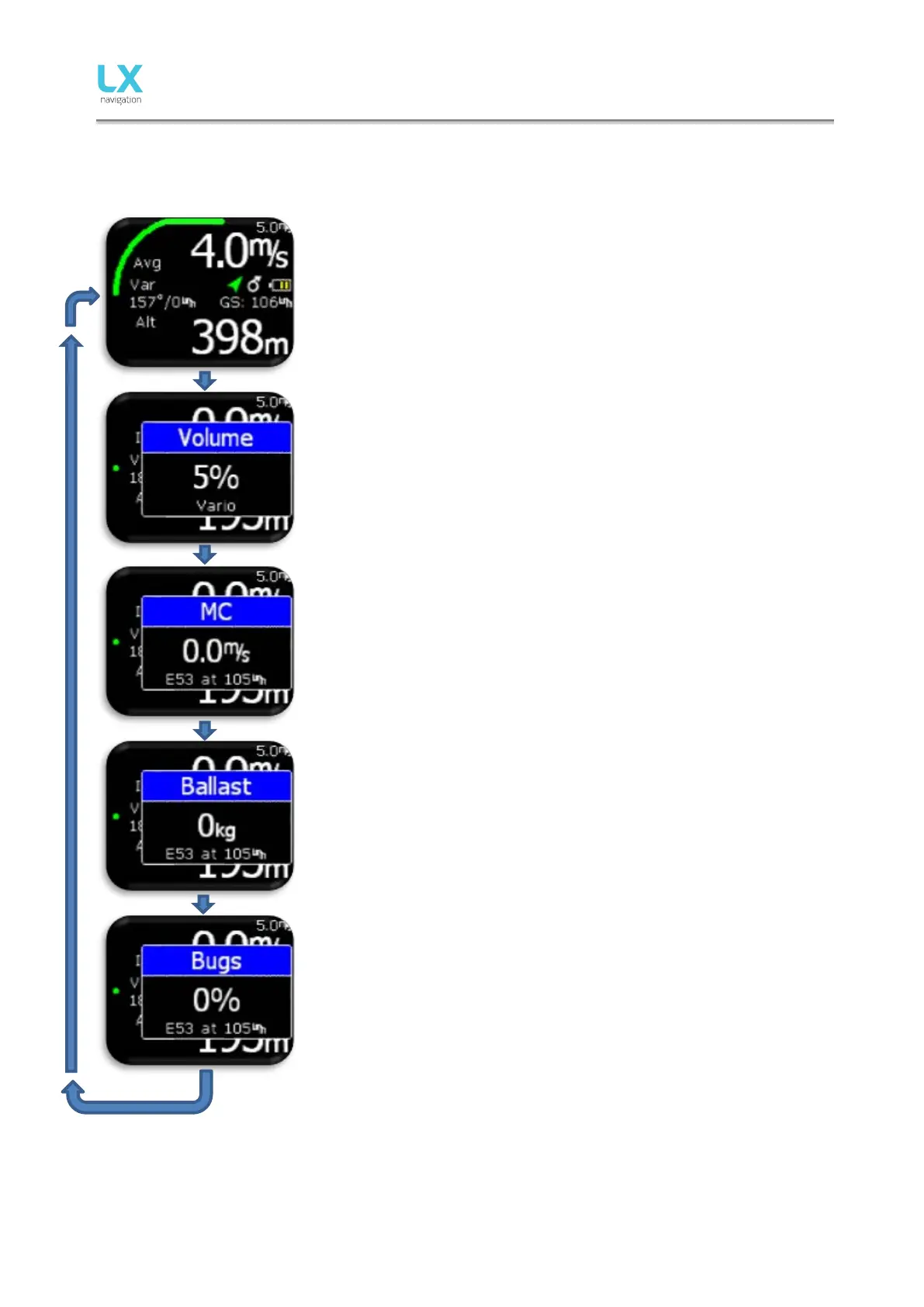 disappears or wait for 2s and vario page will be active again. To change
