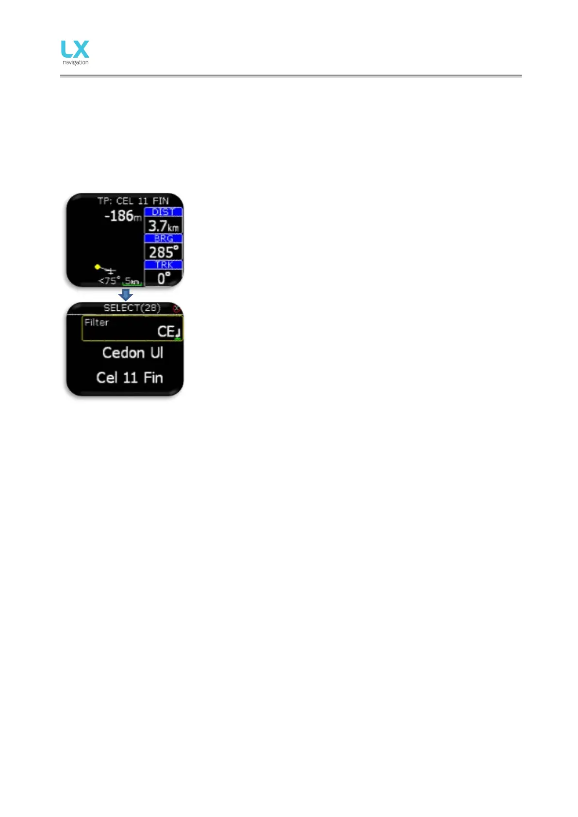 Pilot can select a TP, to which he would like to navigate, with press on