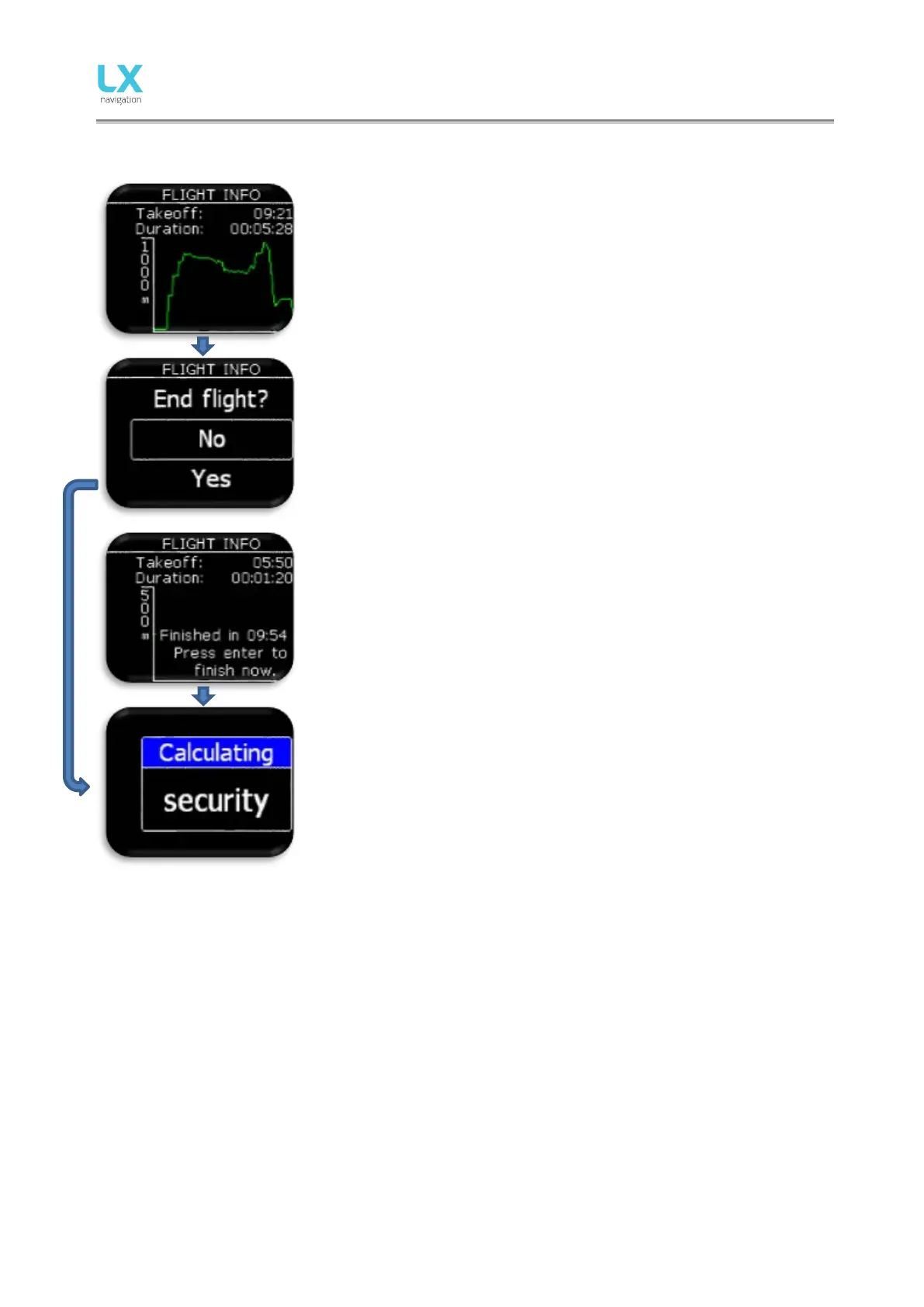 Pressing enter on this page, will offer the pilot an option, to end flight