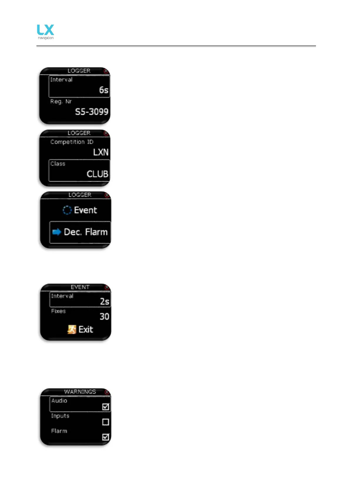 Pilot can enable (box is checked) audio warnings and Flarm warnings.