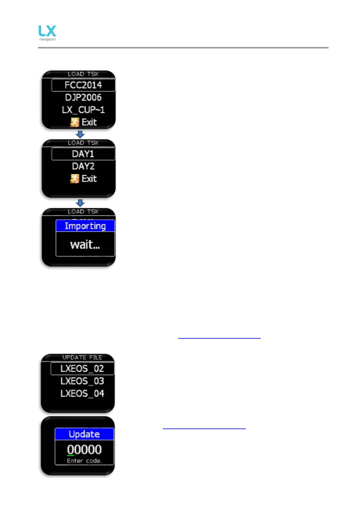 unit. After selecting “Update”, list of all version (*.lxu) files will be listed.