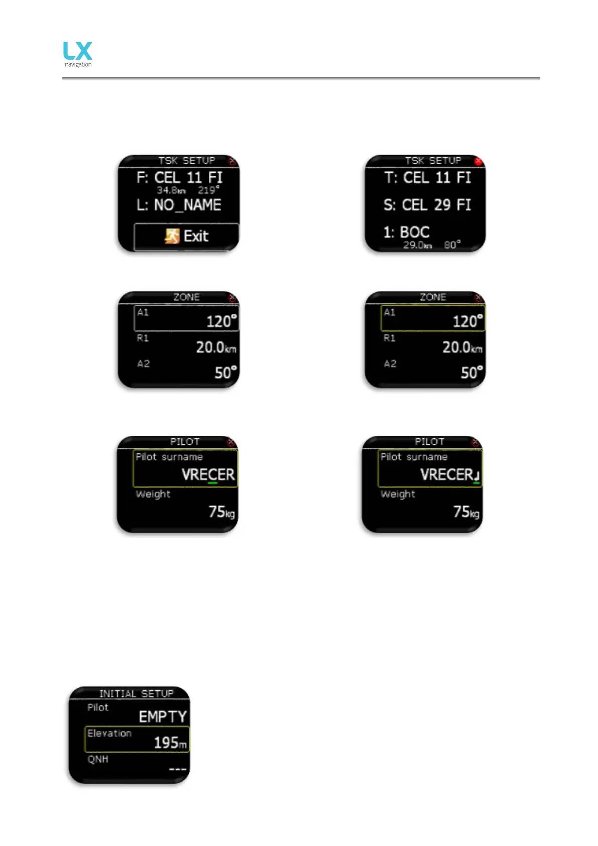 airfield elevation with daily QNH setting. This screen is visible only as standalone version. If used in LX Zeus