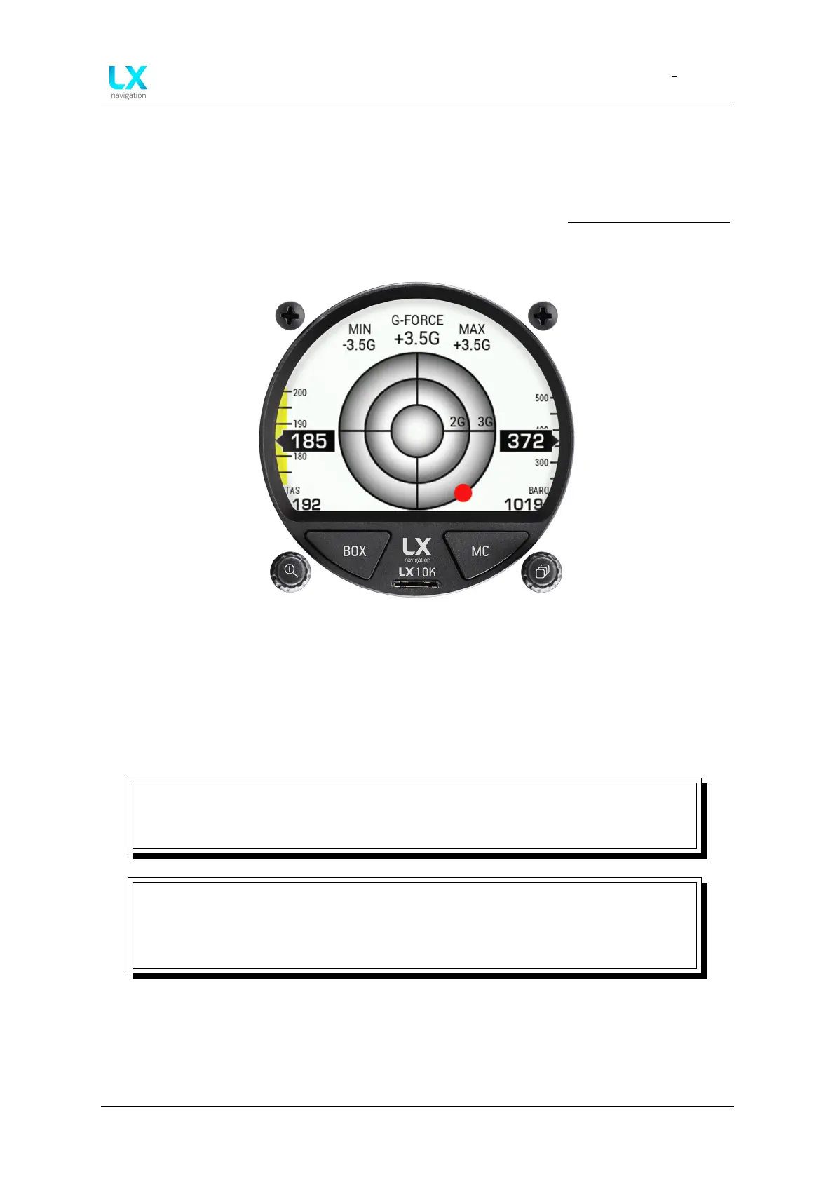 This page utilizes the LX 10k’s internal inertial platform for showing the current, maximum and