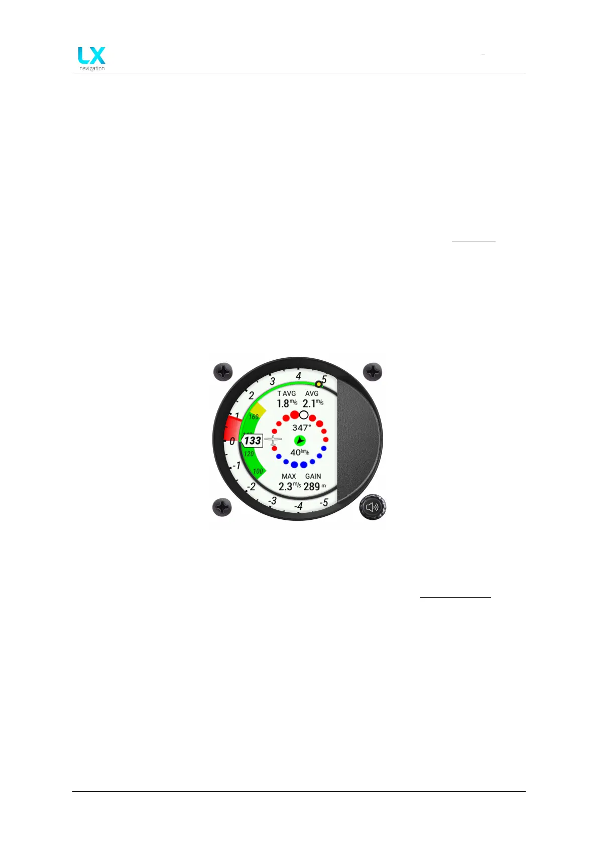 • AVG - shows the integrated vertical speed for the time duration set in the Vario/SC setup