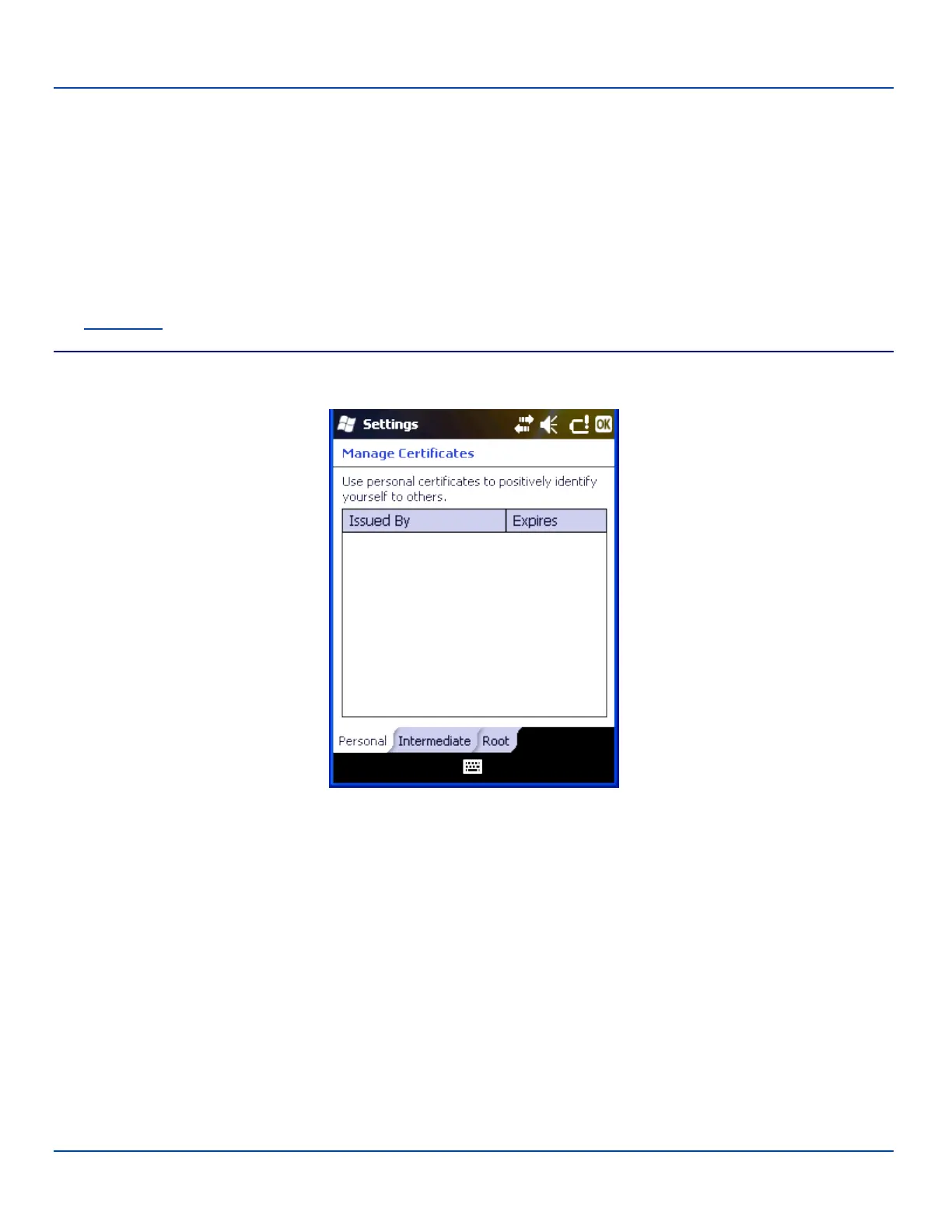This panel lists any installed Personal certificates. Personal certificates are used to identify the user of the device.