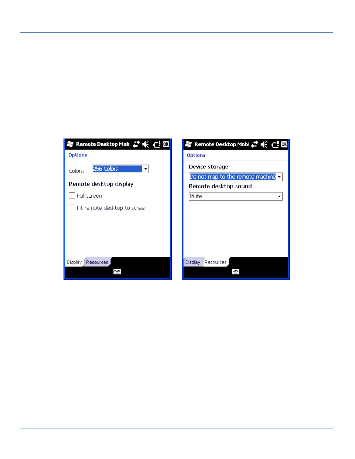 Before connecting to a remote computer, set Remote Desktop Mobile options to improve display and resource when