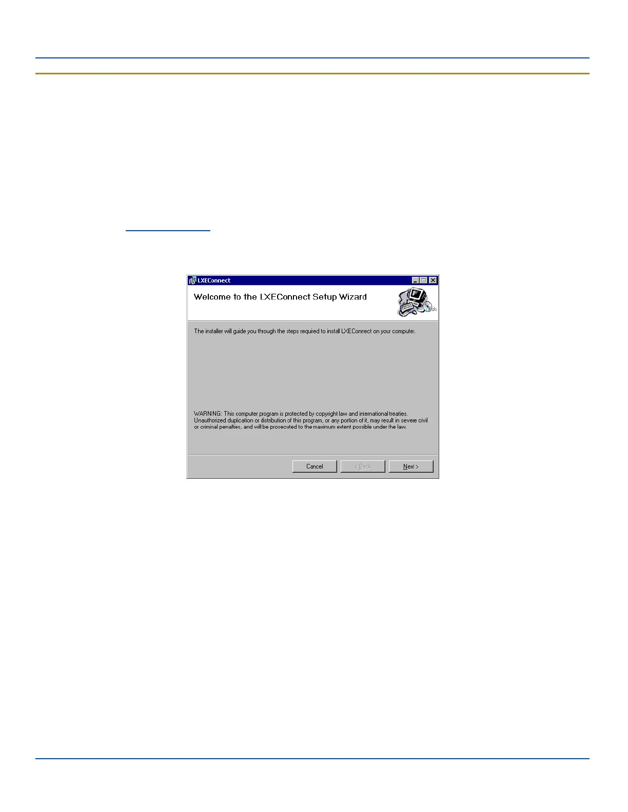 4. Follow the on screen installation prompts. The default installation directory is C:\Program Files\LXE\LXEConnect.