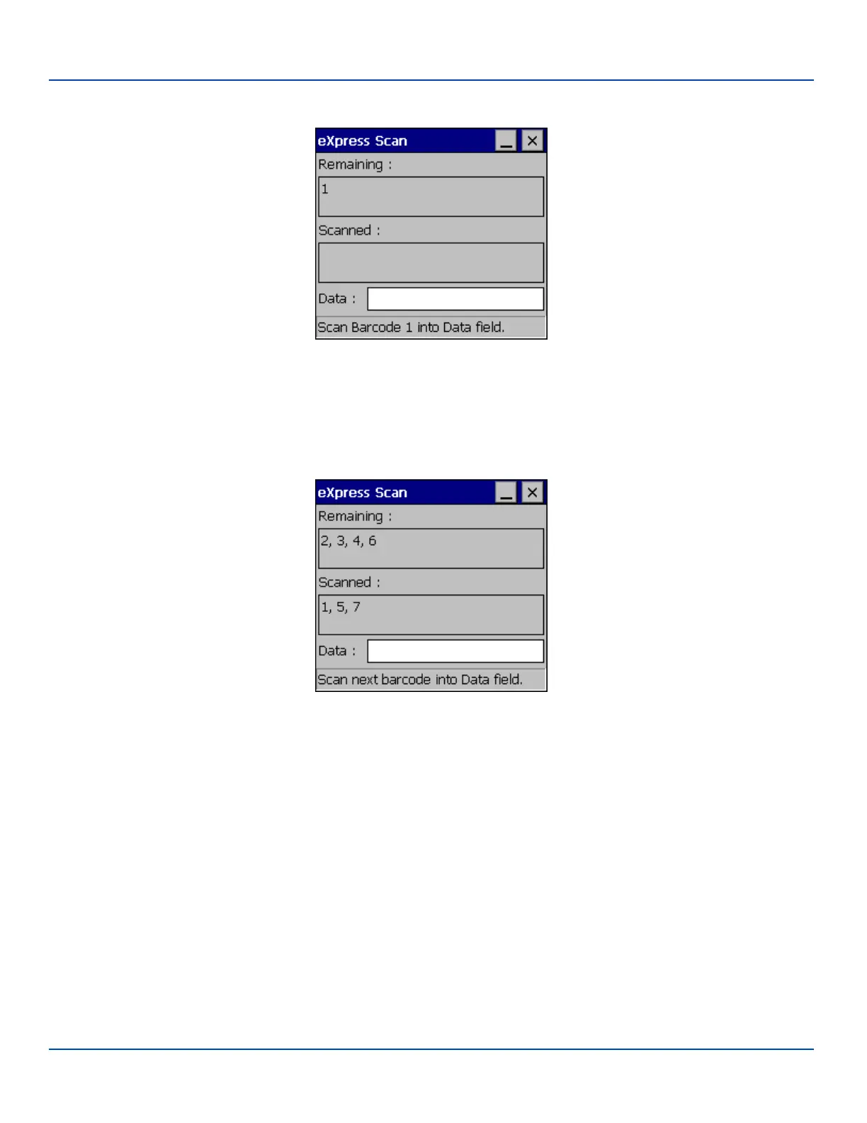 The remaining barcodes may be scanned in any order. After a barcode is scanned, that barcode is removed from the