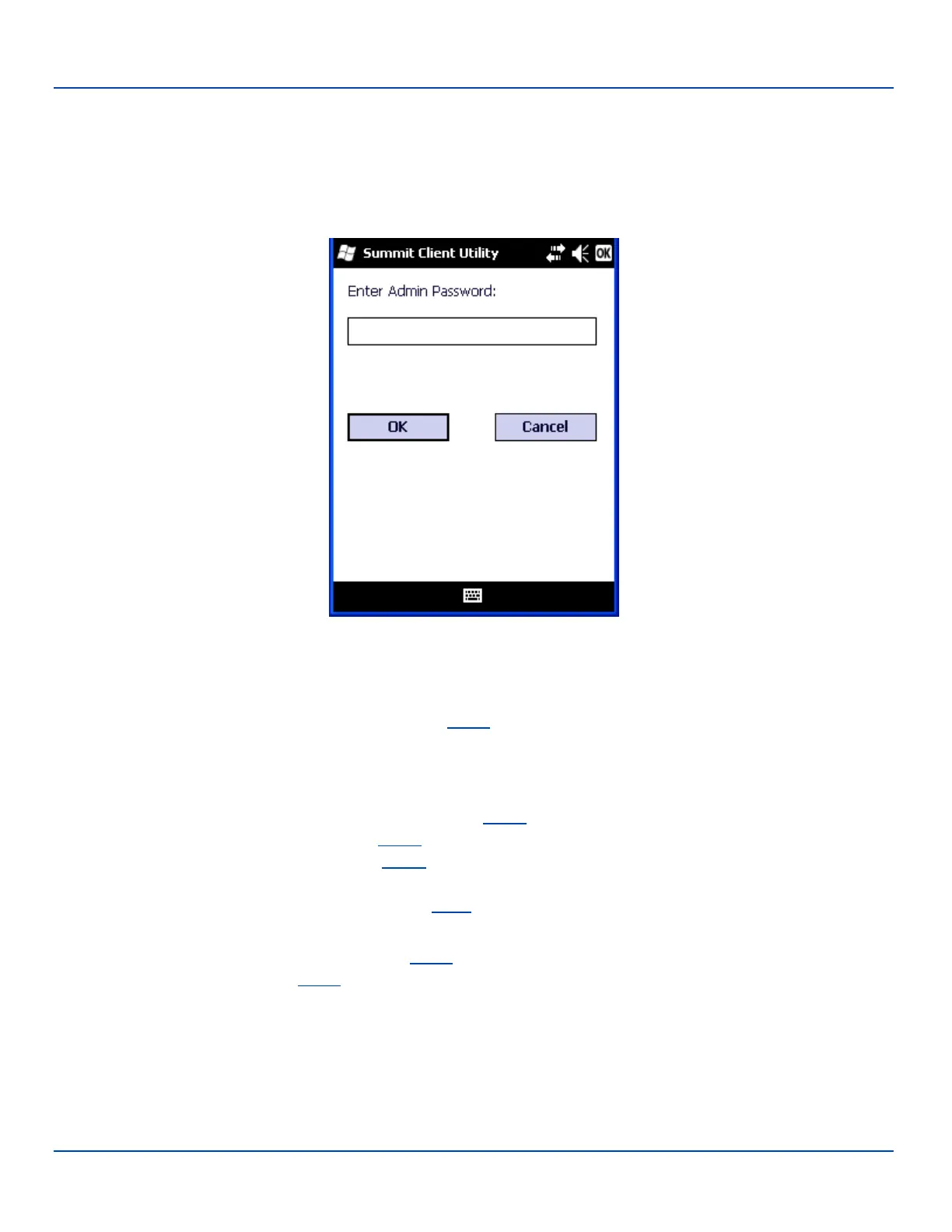 Enter the Admin password (the default password is SUMMIT and is case sensitive) and tap OK. If the password is incorrect,