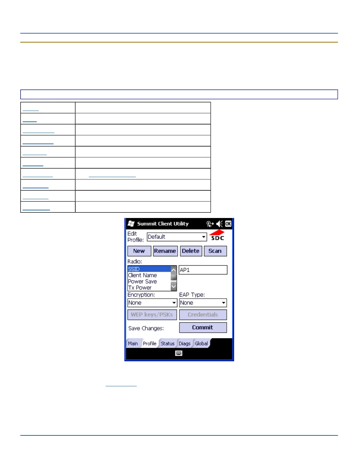 Note: Tap the Commit button to save changes before leaving this panel or the SCU. If the panel is exited before tapping
