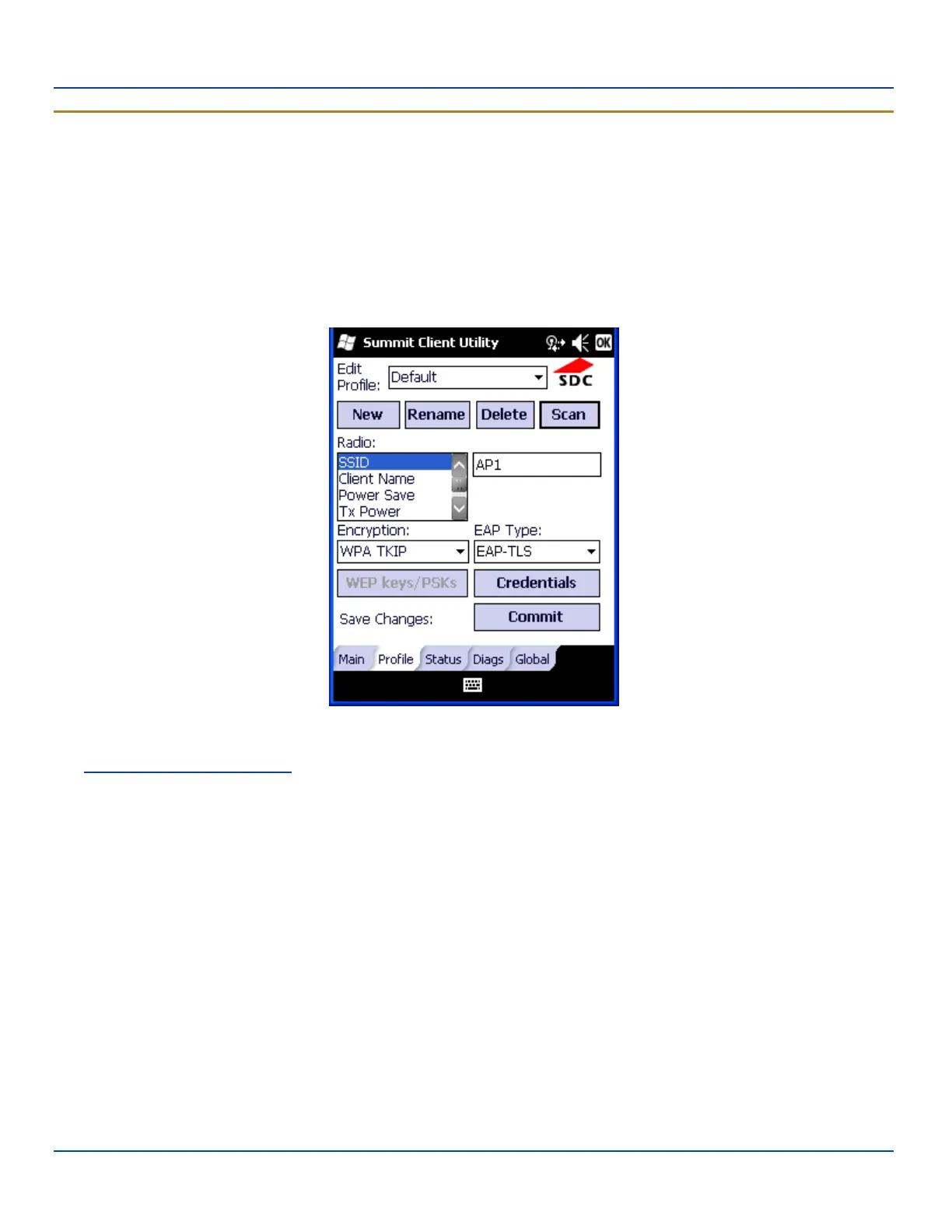 l Enter the SSID of the Access Point assigned to this profile