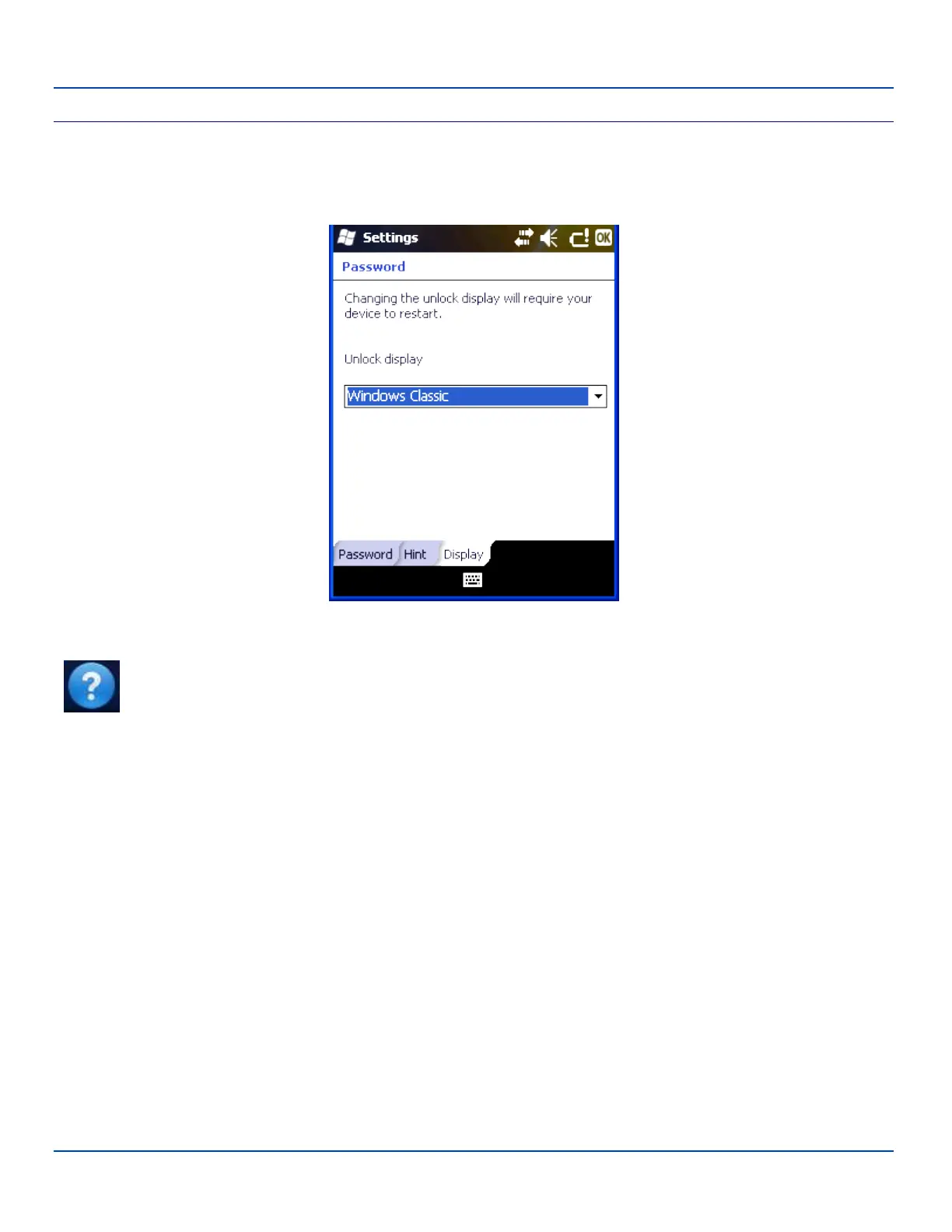 Note: Tap Start | Help for context sensitive Windows Mobile Help when changing or viewing options. Tap the