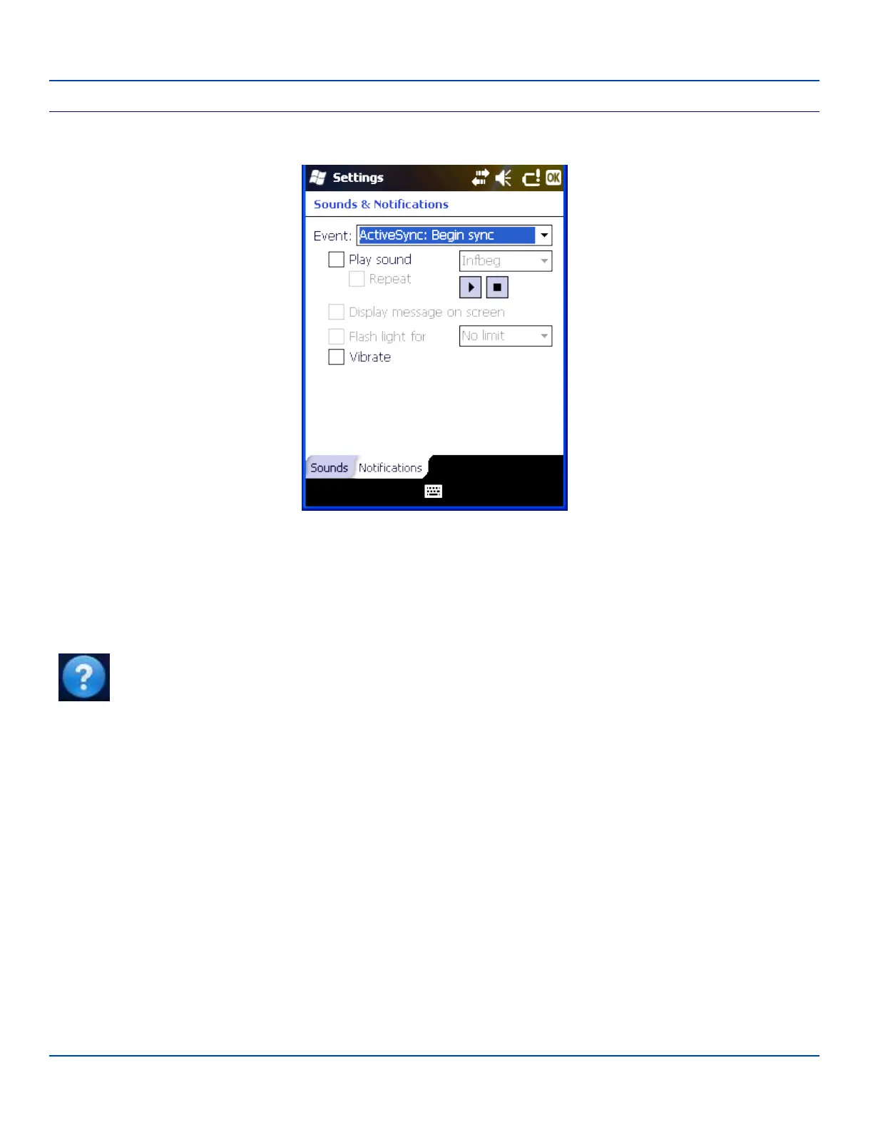 Note: Tap Start | Help for context sensitive Windows Mobile Help when changing or viewing options. Tap the