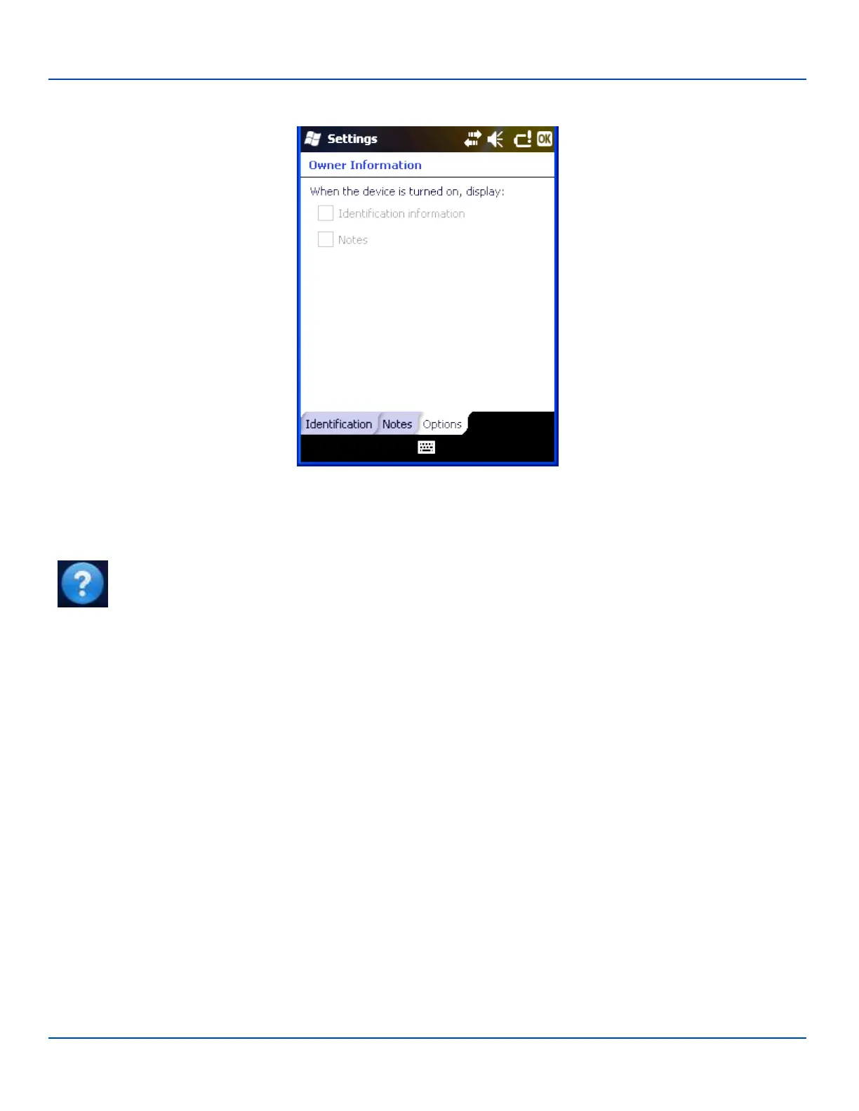 Note: Tap Start | Help for context sensitive Windows Mobile Help when changing or viewing options. Tap the