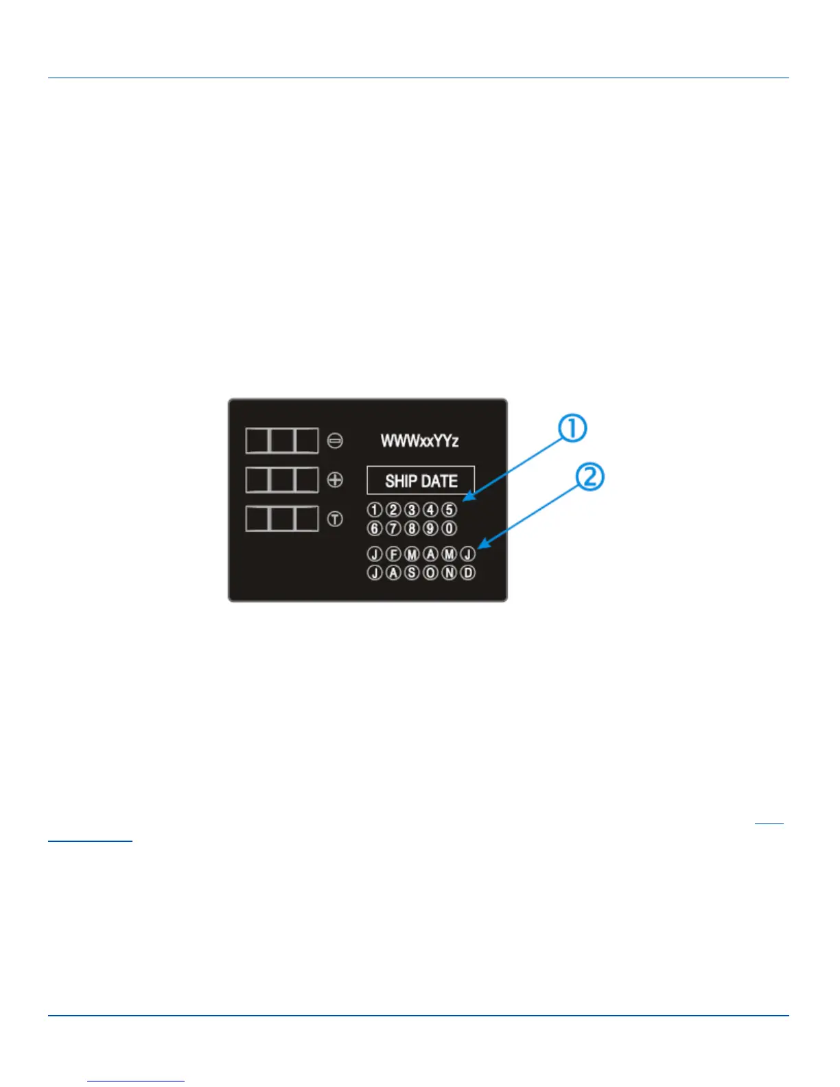 shows the year and the month that the battery was shipped. The first field (labeled 1-0) is the year the battery was shipped. The