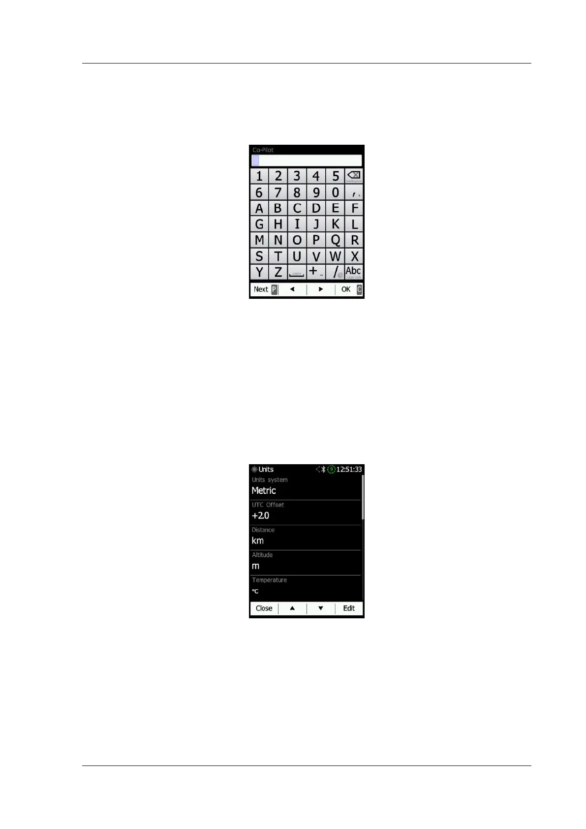 options when editing text. Use the keyboard on the touch screen or the up/down button to