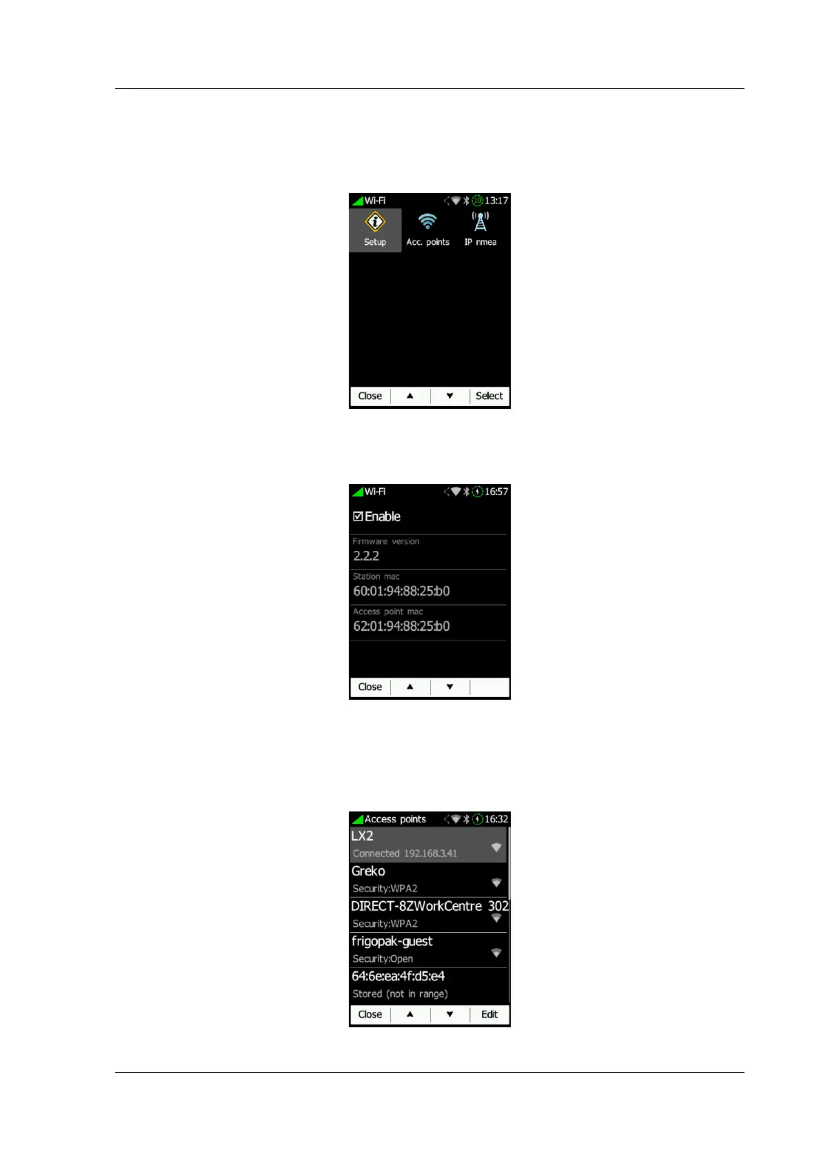 firmware, MAC addresses of Access point and Wi-Fi module.