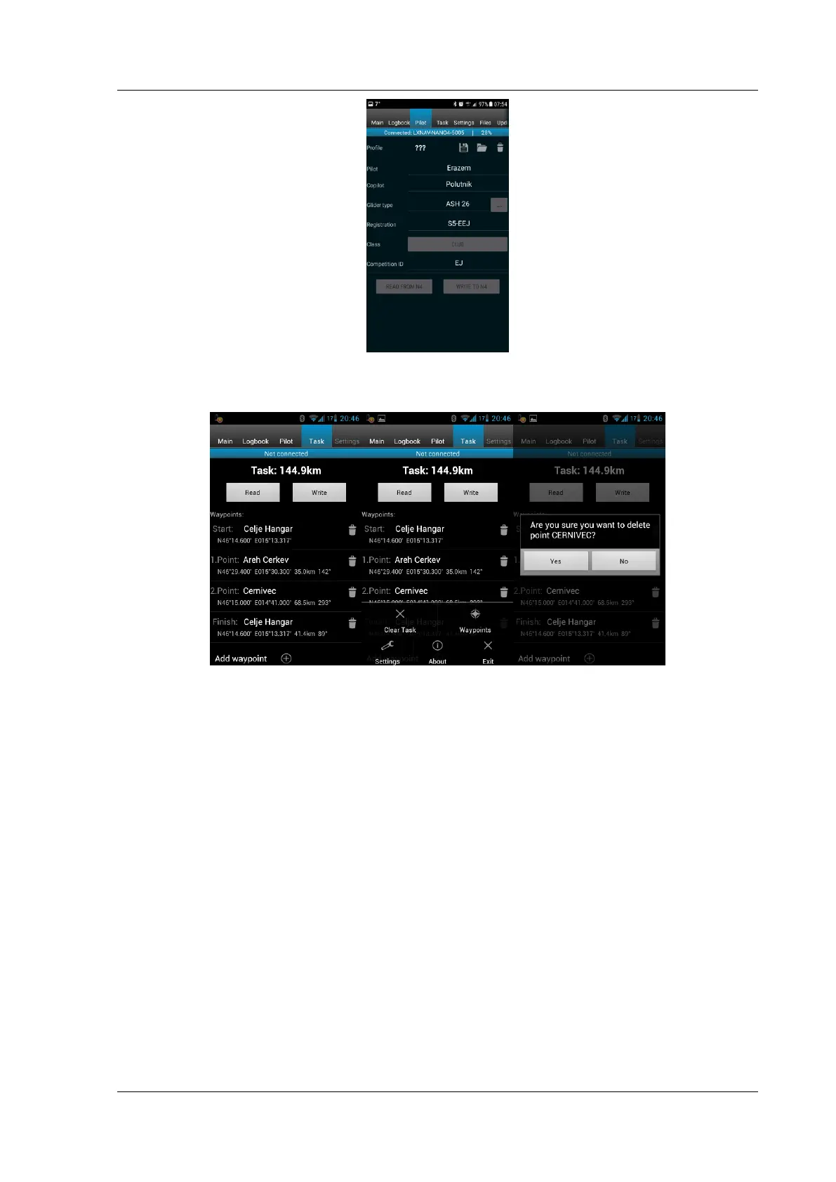 Press the trash box to delete the waypoint from the list. After a task has been entered it can