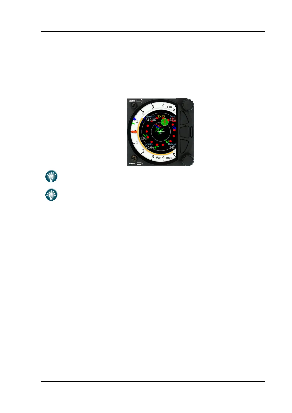 up/down button. Data from a selected FLARM object can be seen in 4 corners: FLARM ID,