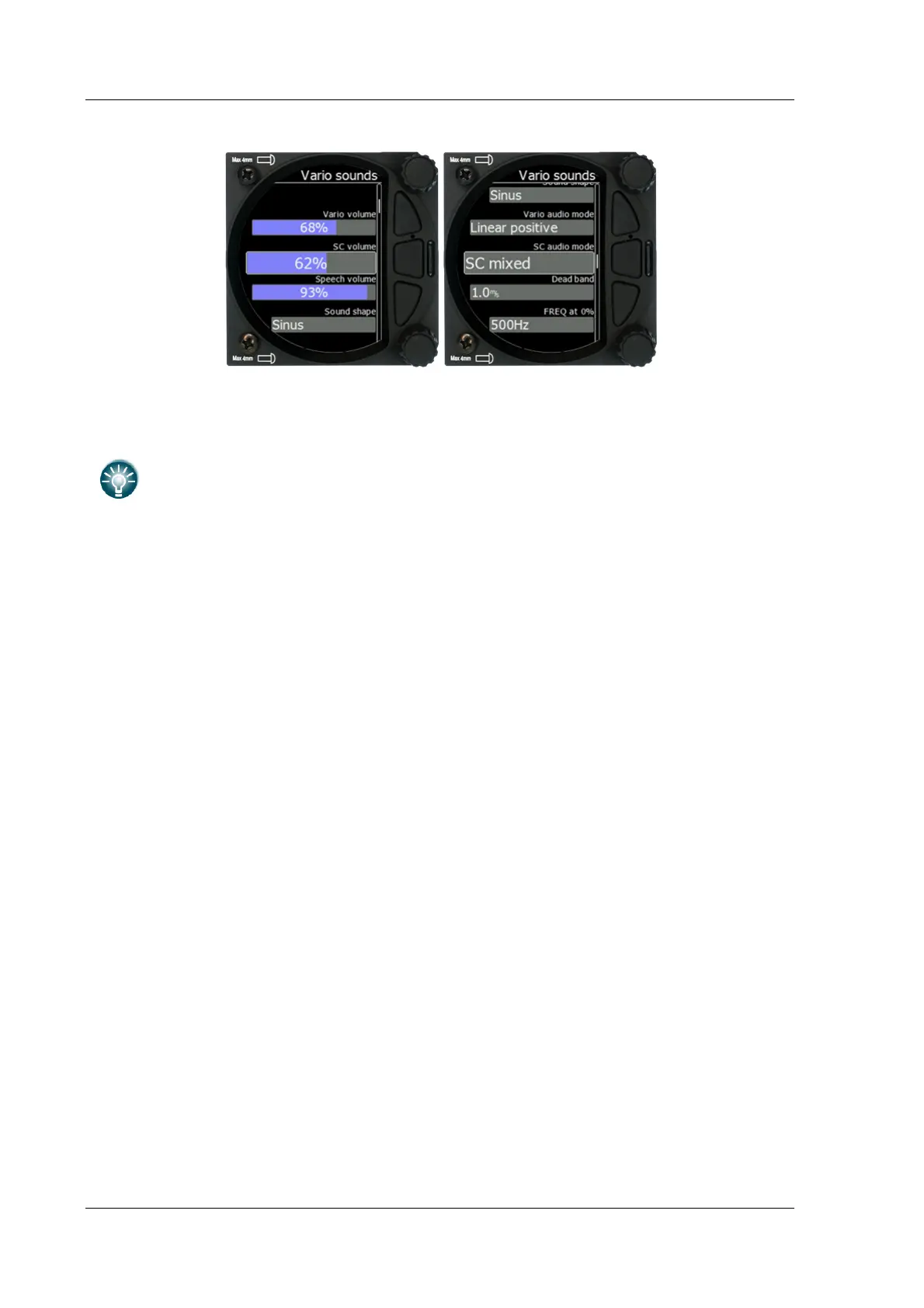 The volume for Vario, FLARM and Speech can also be adjusted directly via the