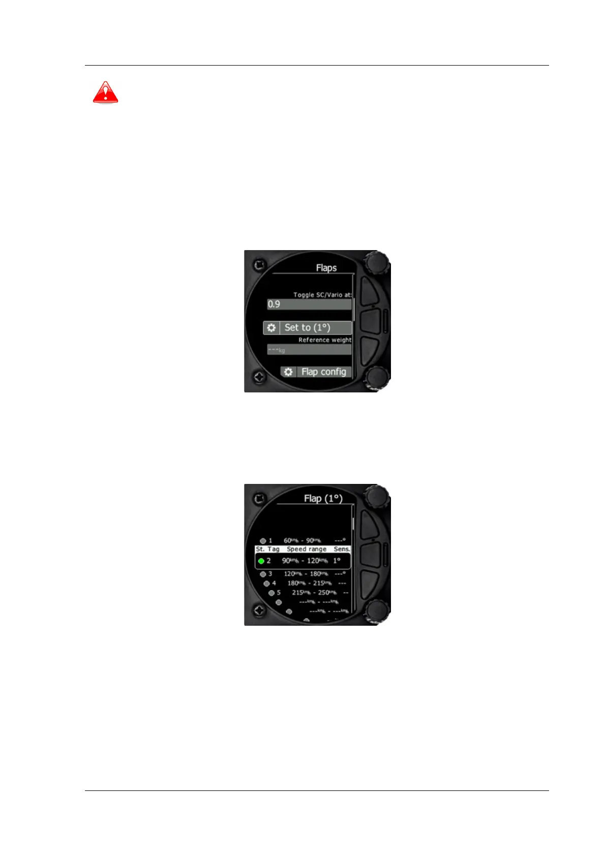 between SC and vario mode. Use the page selector to select the desired flap position. Press