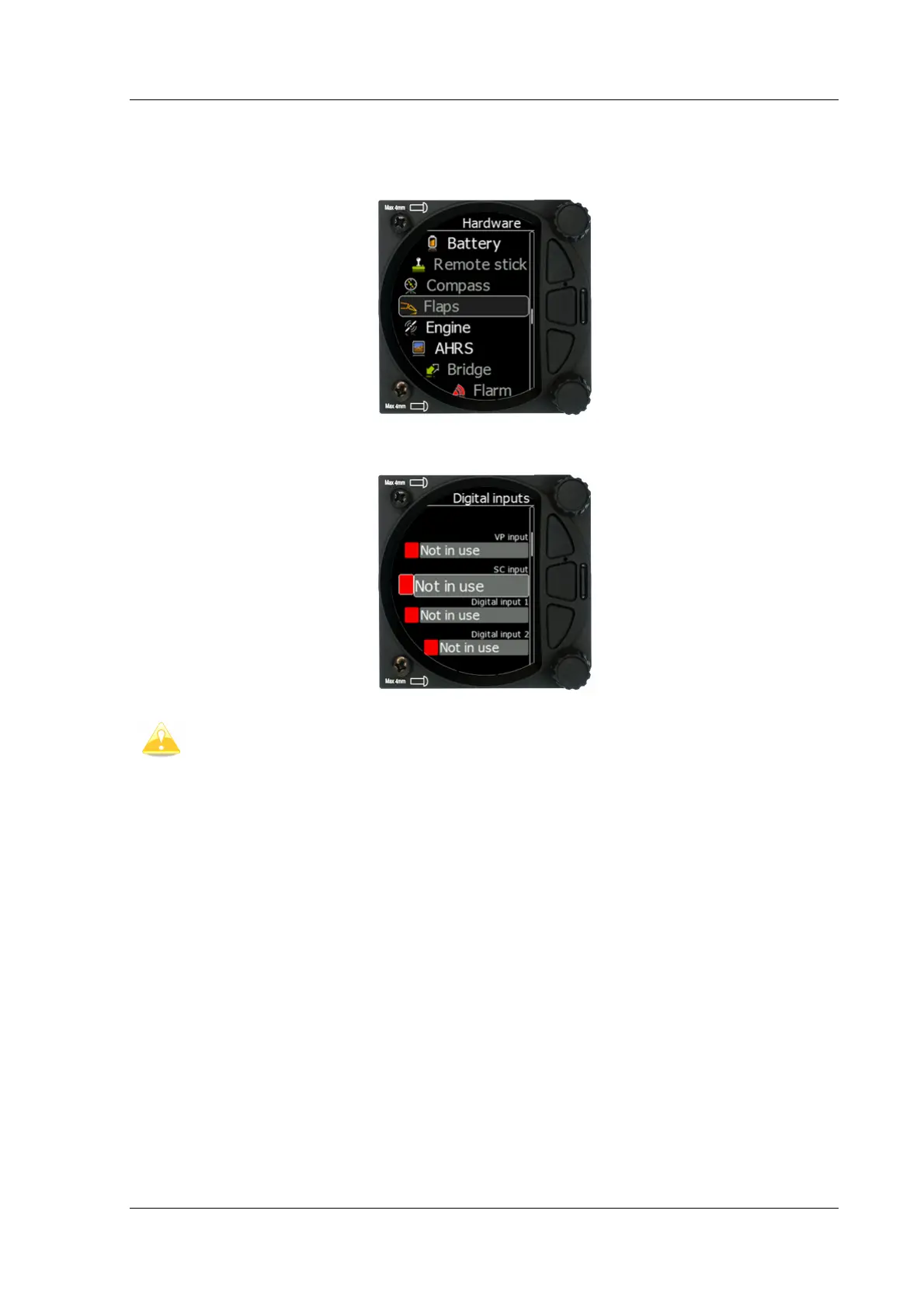 The Hardware setup has a sub menu for Digital inputs, Indicator, Communications, Battery,