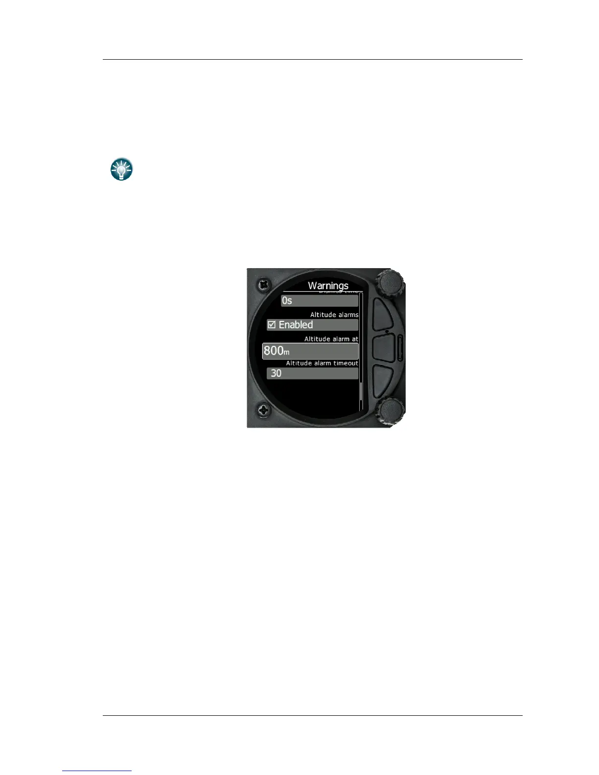 Altitude Alarm time out: can be set from 10 to 500 seconds