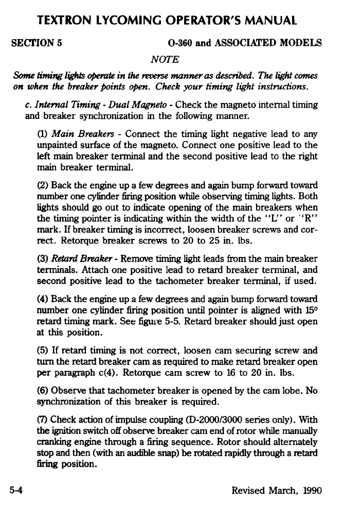 c. Internal Timing - Dual Magneto - Check the magneto internal timing
