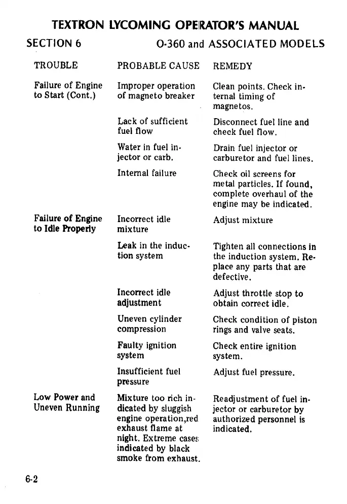 Lycomin 0-360 - Failure of Engine to Idle Properly; Low Power and Uneven Running