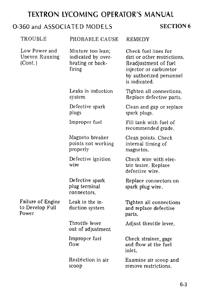 Lycomin 0-360 - Failure of Engine to Develop Full Power