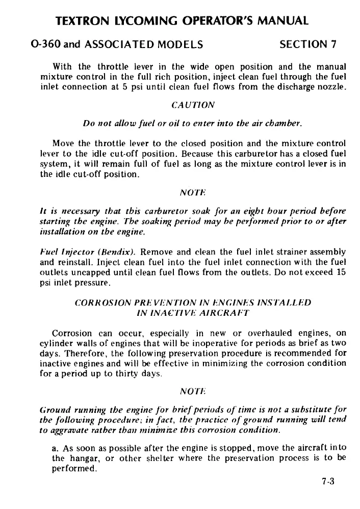 TEXTRON LYCOMING OPERATOR'S MANUAL
