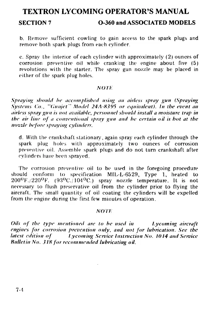 TEXTRON LYCOMING OPERATOR'S MANUAL