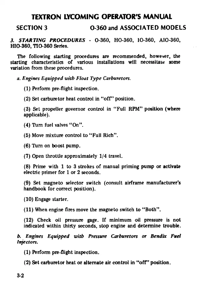 b. Engines Equipped with Pressure Carburetors or Bendix Fuel