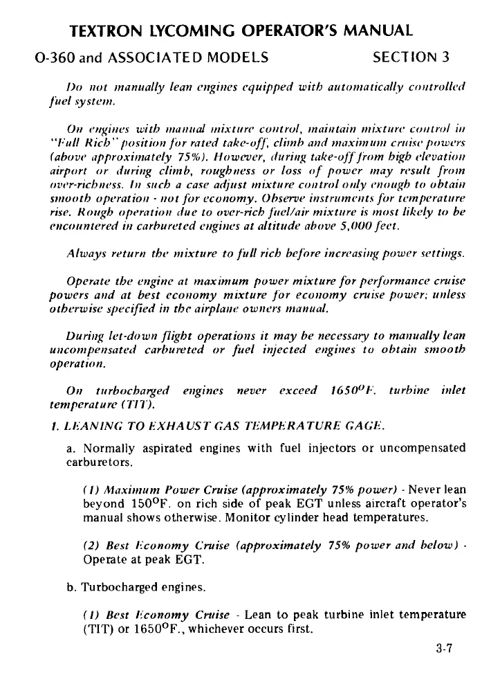"Full Rich" position for rated take-off, climb and maximum cruise powers